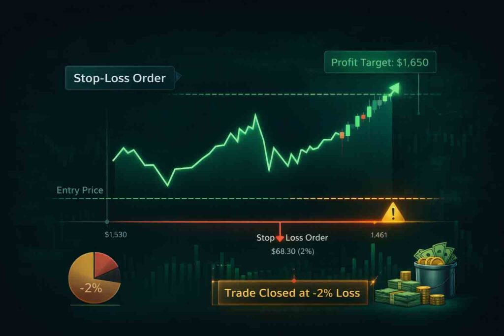 A stop-loss order is a risk management tool that automatically closes your position when the price reaches a certain level. This helps limit losses and protects your capital from large market swings.